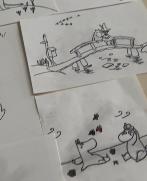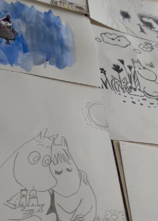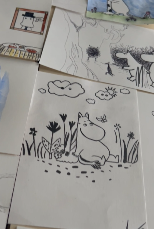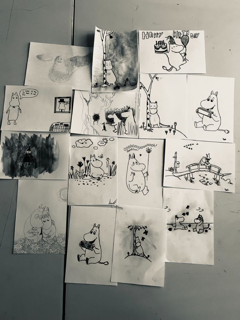 Here is a Moomins storyboard, created by students attending Queens School art club this week. The Moomins family feature in comic strips, storybooks and more recently in animated films, they were originally created by Finnish illustrator, Tove Jansson, who created the characters in 1945.
