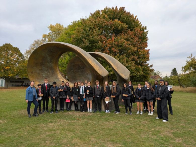 In October, we secured a rare opportunity for Year 9 students to participate in a sculpture workshop at the Henry Moore Studios and Sculpture Gardens in Much Hadham. This is the work-place and family home of 20th century sculptor Henry Moore, with over 70 acres of sculpture gardens and rolling fields. Each year the sculpture gardens display over 20 of Moore's world-famous, monumental sculptures, showcasing his work as he intended, against the landscape he shaped. During the session students learnt about how Henry Moore experimented with plaster and other materials to create his sculptures. They looked inside his maquette studio to understand more about his inspiration and ways of working, and then tried out both casting and carving with plaster.