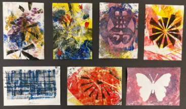 Art Club continues to produce energetic and creative outcomes.  These are a selection of recent prints created using cling film, ink and rollers.
